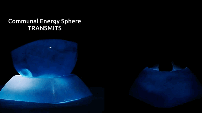 As energy is transmitted to individual households, the CESs deflate, visually indicating communal energy consumption.